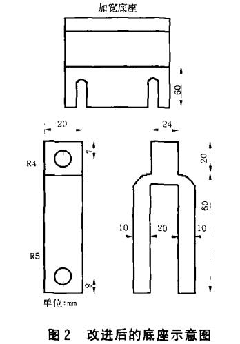 在維修工作中,常發(fā)現(xiàn)三相E型剎車(chē)電磁鐵變形,原因是電磁鐵動(dòng)鐵芯經(jīng)常受到?jīng)_擊, 使動(dòng)鐵芯與靜鐵芯接觸面被撞大,造成動(dòng)鐵芯的活動(dòng)導(dǎo)軌面受到磨損。一旦卡角動(dòng)鐵芯與靜鐵芯吻合面不能很好地接觸,電磁鐵內(nèi)部將形成較大磁阻,引起線(xiàn)圈產(chǎn)生足以使線(xiàn)圈發(fā)熱燒毀的電流,致使電磁鐵線(xiàn)圈燒毀。當(dāng)3個(gè)線(xiàn)圈中任意1個(gè)燒毀,電磁鐵吸引力平衡被破壞,另外2個(gè)也就很快跟著燒毀,只好將3個(gè)線(xiàn)圈同時(shí)換掉。這種電磁鐵在 設(shè)計(jì)時(shí)因考慮到簡(jiǎn)潔,動(dòng)鐵芯與制動(dòng)拉桿之間只有一根連桿,極易造成動(dòng)鐵芯的不平衡使鐵芯被卡住,致使制動(dòng)電磁鐵線(xiàn)圈發(fā)熱燒毀。在易燃易爆場(chǎng)所更換線(xiàn)圈時(shí),必須裝上防爆裝置才能試車(chē),這時(shí)無(wú)法觀察到鐵芯的動(dòng)作情況,常常造成返工。為了克服電磁鐵線(xiàn)圈經(jīng)常燒毀的問(wèn)題,經(jīng)過(guò)仔細(xì)觀察發(fā)現(xiàn),如果將制動(dòng)剎車(chē)調(diào)節(jié)到佳狀態(tài)時(shí),制動(dòng)拉桿的力約在68.6—78.4N之間,完全可以用MQI-513型、吸引力為78.4N、行程為25em的牽引電磁鐵來(lái)代替原有的三相式E型電磁鐵。按圖1先將原來(lái)固定三相電磁鐵的底座加寬6ocm,然后按電磁鐵底板的尺寸鉆孔,把電磁鐵倒裝上去。為防止電磁鐵的活動(dòng)鐵芯超行程滑脫出來(lái)在牽引電磁鐵活動(dòng)鐵芯與制動(dòng)器連桿之間,按圖2的尺寸重做一個(gè)。固定好電磁鐵后就可以把連桿與動(dòng)鐵芯用鋼梢固牢。